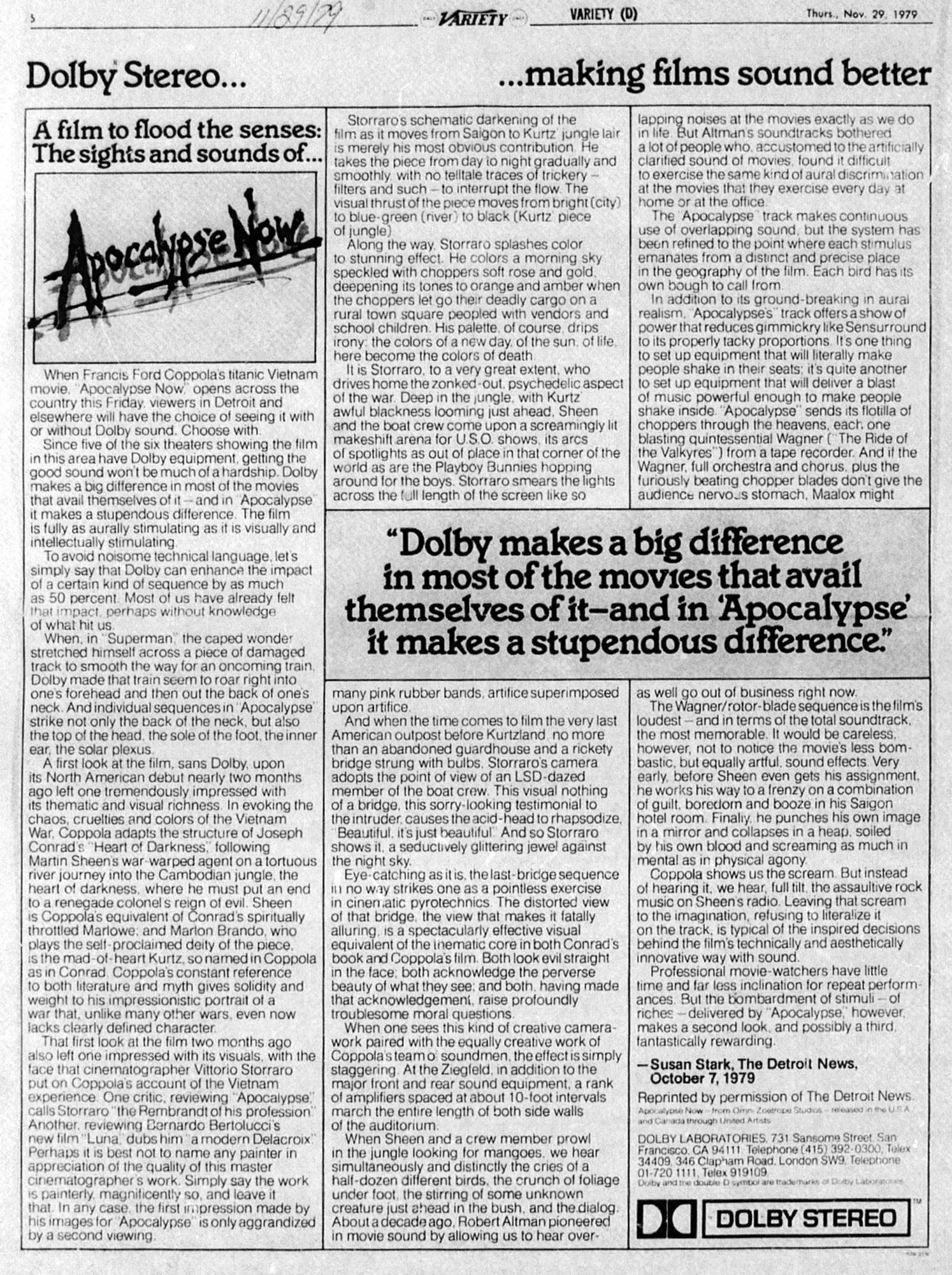 Apocalypse Now Wins Best Sound