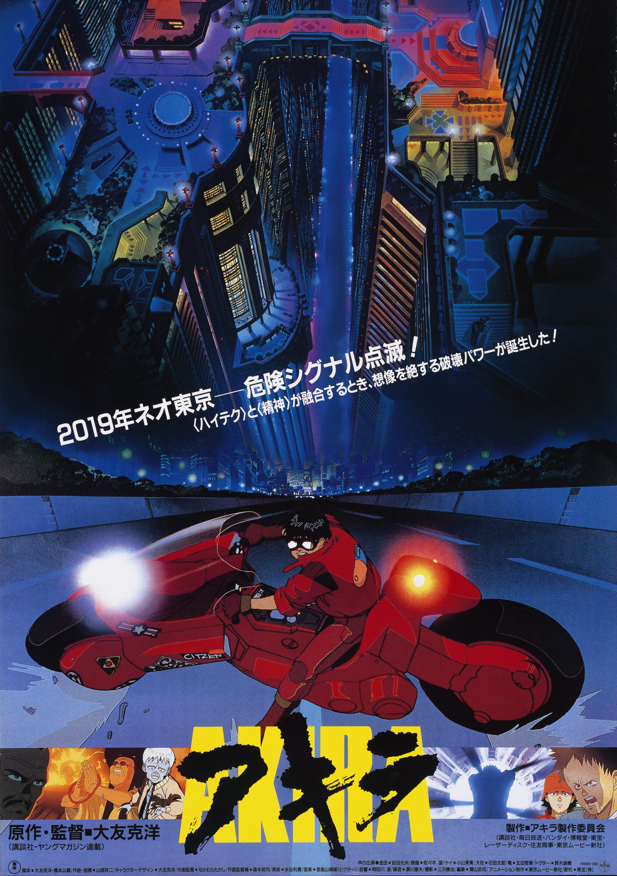 In 2019, it has been 31 years since the Japanese government dropped an atomic bomb on the city of Tokyo, now known as Neo-Tokyo. Amid the corruption, protest and violence of the dystopian landscape, Kaneda (Mitsuo Iwata) and his anti-establishment biker gang zoom through the city. When a joyride gone wrong reveals that childhood friend Tetsuo (Nozomu Sasaki) might soon be the victim of the very same government project that long ago resulted in the bombing of the city, Kaneda and his gang take action to fight the politicians, scientists and military leaders at the head of this evil scheme.