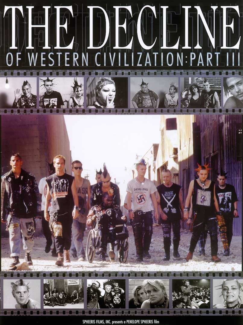 Penelope Spheeris returns to the punk scene she first documented in 1981 and finds new bands equally as inflammatory as their predecessors. The powerful final chapter in Spheeris’s Decline of Western Civilization trilogy again not only focuses on these newer underground bands – such as the politically-charged Naked Aggression – but also the concertgoers and club owners that sustain them. Spheeris pays special attention to their fans, particularly the young and homeless “gutterpunks.” Raised in broken homes, they live drink to drink, squatting in derelict Hollywood buildings and panhandling, or “spanging,” on Hollywood Boulevard to get by.