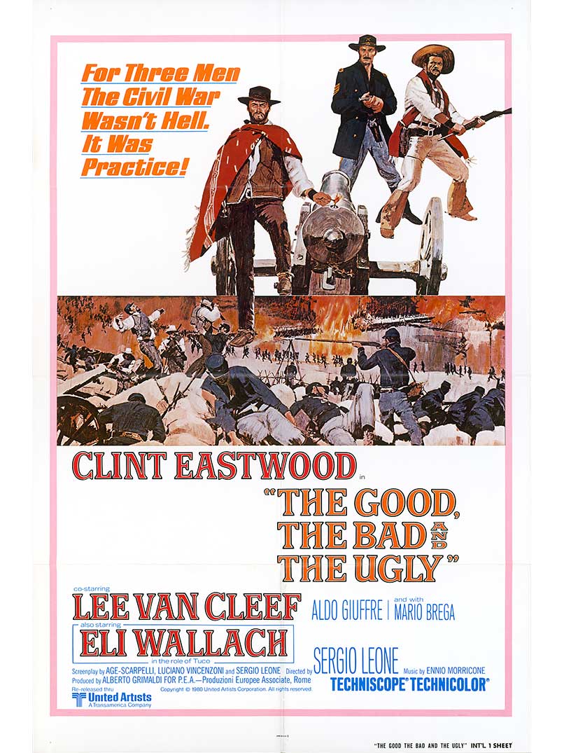 1966, 161 minutes, color | Written by Luciano Vincenzoni, Sergio Leone; directed by Leone; with Clint Eastwood, Eli Wallach, Lee Van Cleef, Aldo Giuffre, Chelo Alonso, Mario Brega.