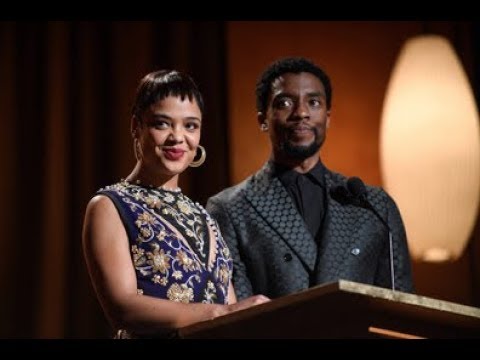 Tessa Thompson and Chadwick Boseman honor Charles Burnett at the 2017 Governors Awards