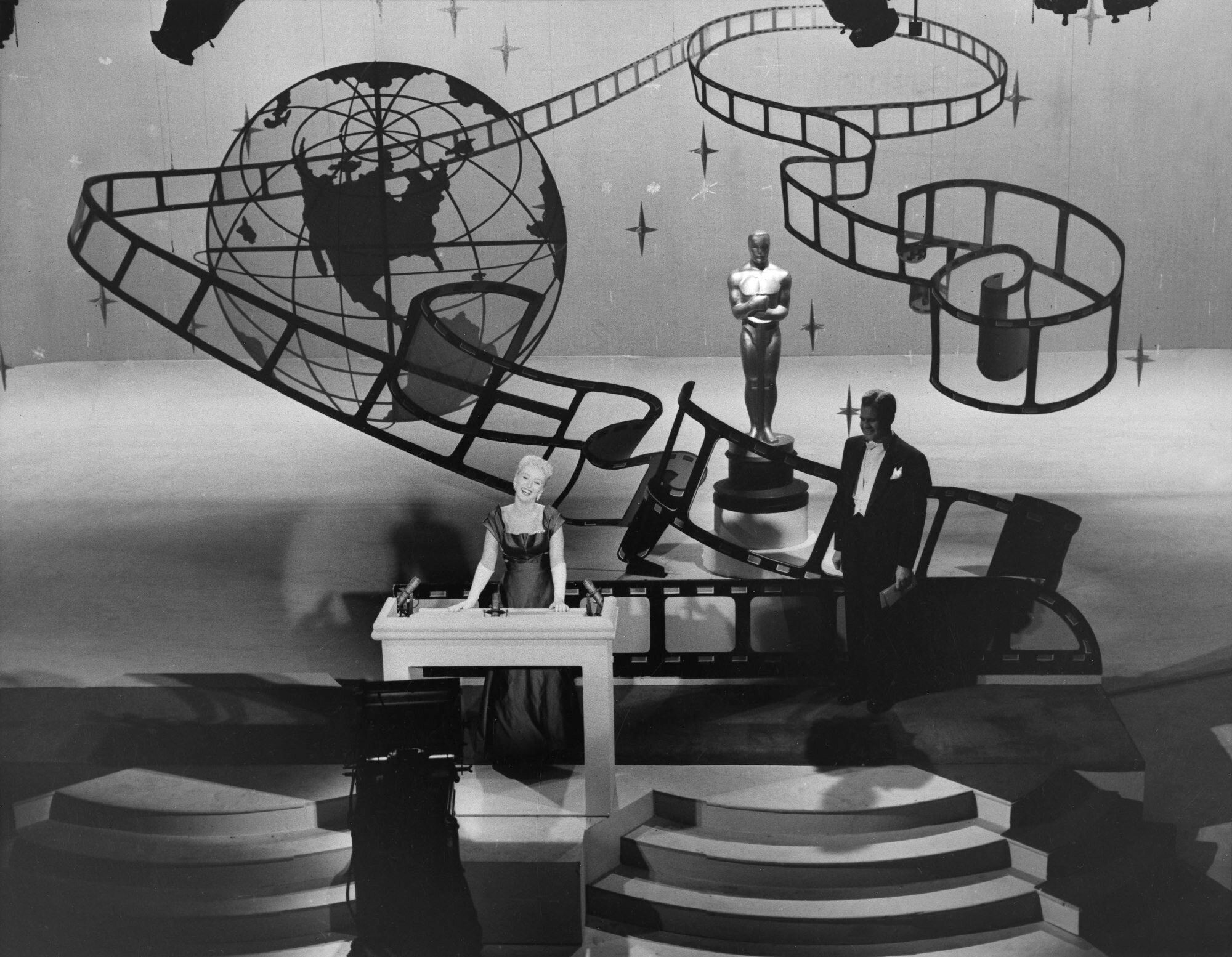 Jerry Lewis was the master of ceremonies in Hollywood and Celeste Holm was the host of the companion show in New York City.